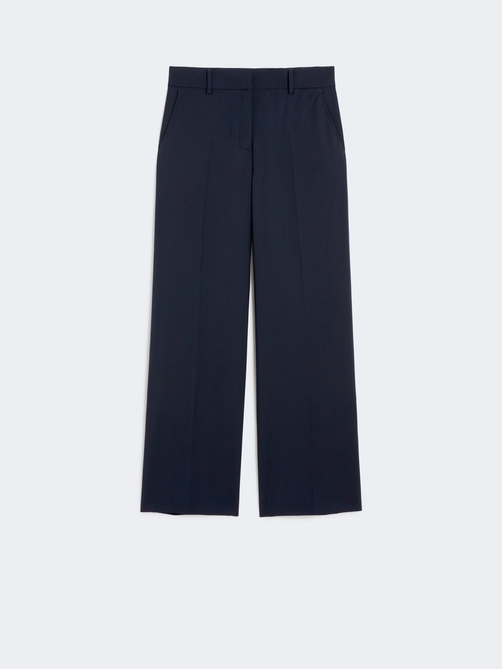 DETAILS Wide-leg palazzo trousers. Trousers in natural stretch pure woollen cloth High-cut waistband with a fly-covered zip and hook-and-bar fastening Slant side pockets Buttoned welt rear pockets Belt loops on the waist and pressed pleat detail COMPOSITION AND CARE 100% virgin wool. Do not wash; do not bleach; do not tumble dry; cool iron; professionally dry clean perchloroethylene - mild process; do not wet clean. Distributed by Max Mara S.r.l., registered office in Reggio Emilia (Italy), Via Giulia Maramotti 4, 42124 (IT)