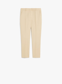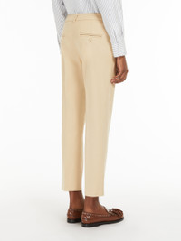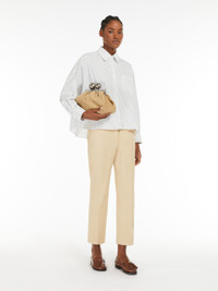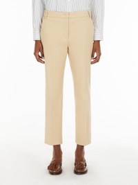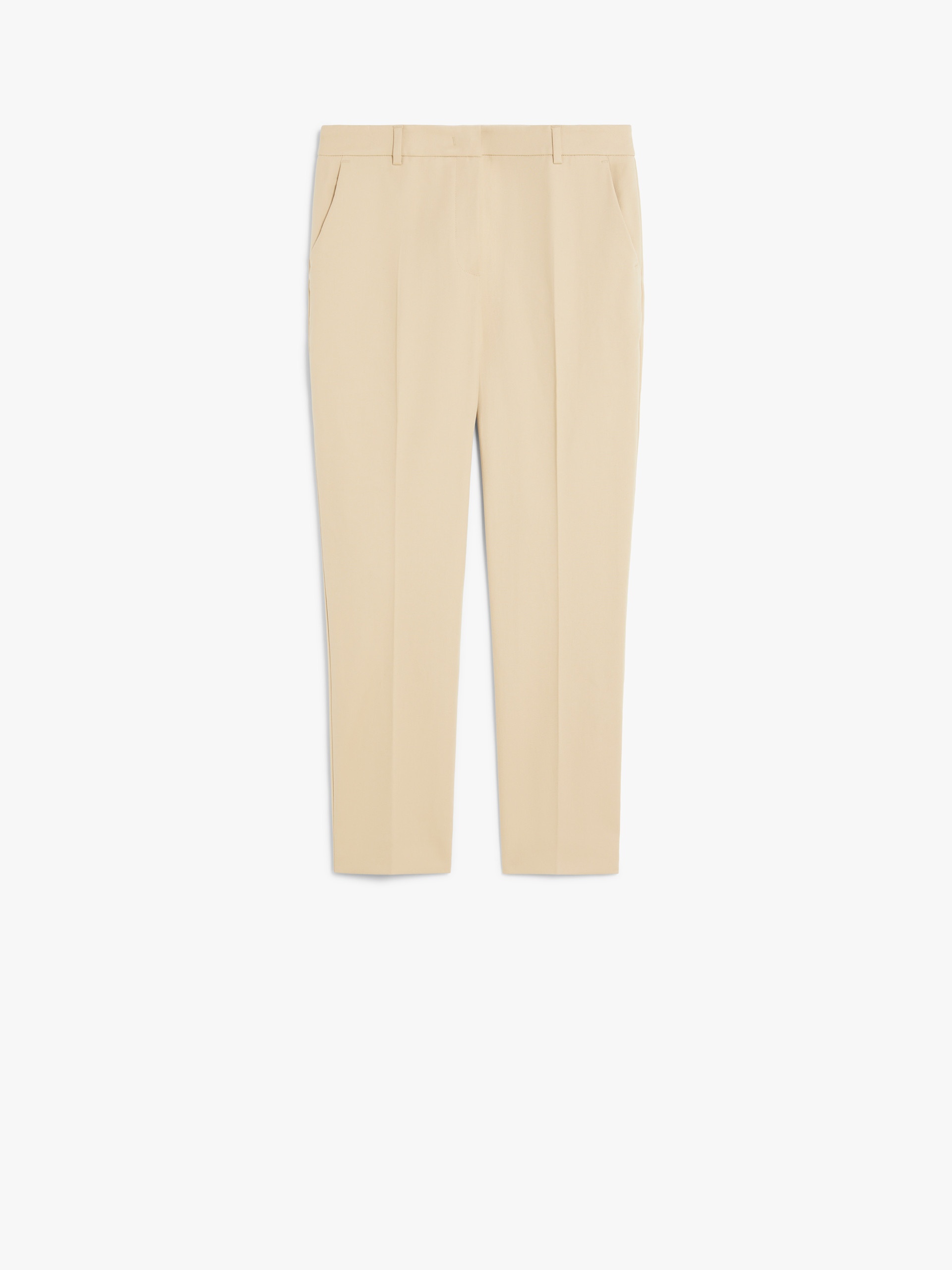 DETAILS Stretch cotton cigarette trousers featuring a regular fit, pressed pleat detail and an above-ankle-length cropped cut. The model boasts belt loop detail, slant side pockets and buttoned double-jetted rear pockets. High-cut waistband with a fly-covered zip and hook-and-bar fastening. COMPOSITION AND CARE 99% cotton, 1% elastane. Machine wash cold delicate cycle; do not bleach; do not tumble dry; line drying in the shade; cool iron; professionally dry clean perchloroethylene - mild process. Distributed by Max Mara S.r.l., registered office in Reggio Emilia (Italy), Via Giulia Maramotti 4, 42124 (IT)