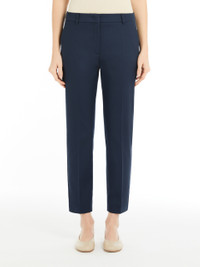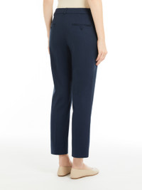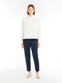 DETAILS Stretch cotton cigarette trousers featuring a regular fit, pressed pleat detail and an above-ankle-length cropped cut. The model boasts belt loop detail, slant side pockets and buttoned double-jetted rear pockets. High-cut waistband with a fly-covered zip and hook-and-bar fastening. COMPOSITION AND CARE 99% cotton, 1% elastane. Machine wash cold delicate cycle; do not bleach; do not tumble dry; line drying in the shade; cool iron; professionally dry clean perchloroethylene - mild process. Distributed by Max Mara S.r.l., registered office in Reggio Emilia (Italy), Via Giulia Maramotti 4, 42124 (IT)