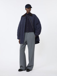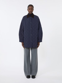 DETAILS Single-breasted midi jacket, diamond quilted and padded with Luxepad ultra-fine insulating technology camel-silk blend edition. Water-repellent taffeta jacket with diamond quilted pattern Straight cut, slightly flared design Velvet shirt collar Raglan sleeves with snap-button cuff Concealed zip fastening and snap buttons Vertical welt pockets on the sides The rounded hem is slightly longer at the back COMPOSITION AND CARE Fabric 100% polyamide; with quilting in 49% polyester, 46% camelwool, 5% silk; lining 100% polyamide; lining 2 65% cotton, 35% polyester; - exclusive of decoration. Do not wash; do not bleach; do not tumble dry; cool iron; professionally dry clean perchloroethylene - mild process; do not wet clean.; wash the garment while it is fastened.; don’t iron the labels.; turn the articles inside out before washing. Distributed by Max Mara S.r.l., registered office in Reggio Emilia (Italy), Via Giulia Maramotti 4, 42124 (IT)