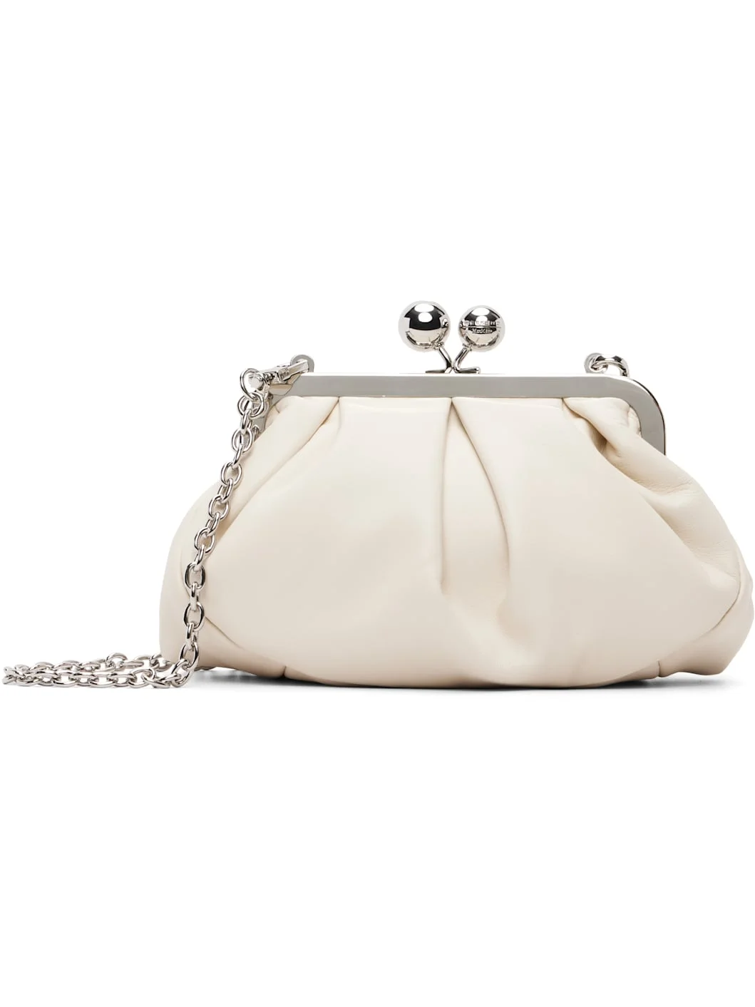 Grained nappa sheepskin shoulder bag. · Detachable cable-chain shoulder strap · Kiss-lock closure · Twill lining · H5.5" x W8.5" x D3.5" Supplier color: Ivory Sheepskin. Made in Italy 261183F048002
