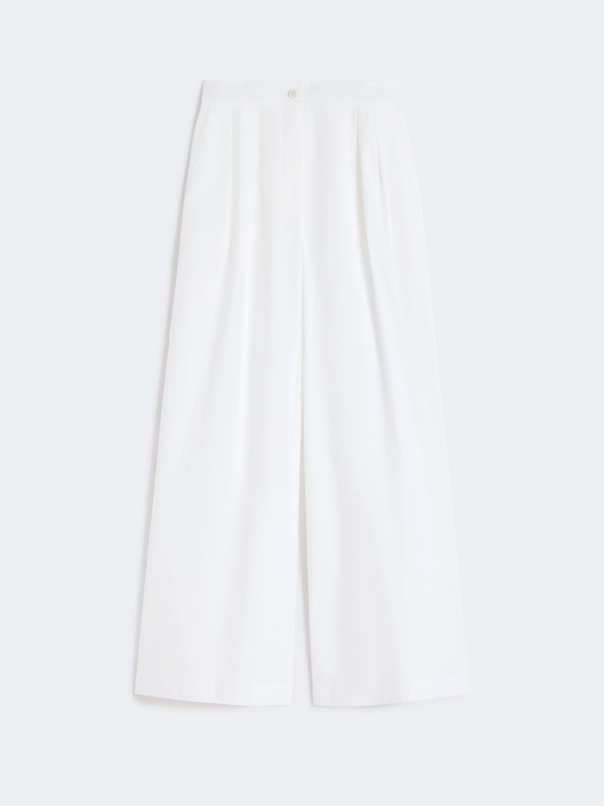 DETAILS Long trousers featuring a wide-leg silhouette. - Regular fit - Pure cotton poplin trousers - Concealed zip fastening with button - Elasticated waist back - Slant pockets at the sides - Double pleats at the waist front COMPOSITION AND CARE 100% cotton. Machine wash cold delicate cycle; do not bleach; do not tumble dry; line drying in the shade; cool iron; professionally dry clean perchloroethylene - mild process.; wash separately. Distributed by Max Mara S.r.l., registered office in Reggio Emilia (Italy), Via Giulia Maramotti 4, 42124 (IT) Collection: Weekend Max Mara Product code: 5131146206004 - WKDBENDA