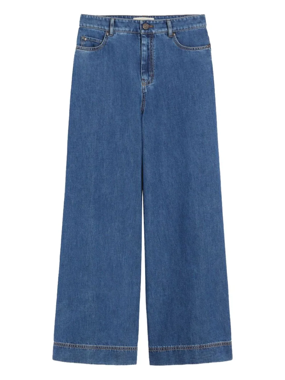 wide-leg cropped jeans Highlights - Blue - Five pockets - Front button fastening - Contrast stitching - Wide leg - Cropped leg Made in Italy Composition Cotton 100% Washing instructions Read Manufacturer Guidelines