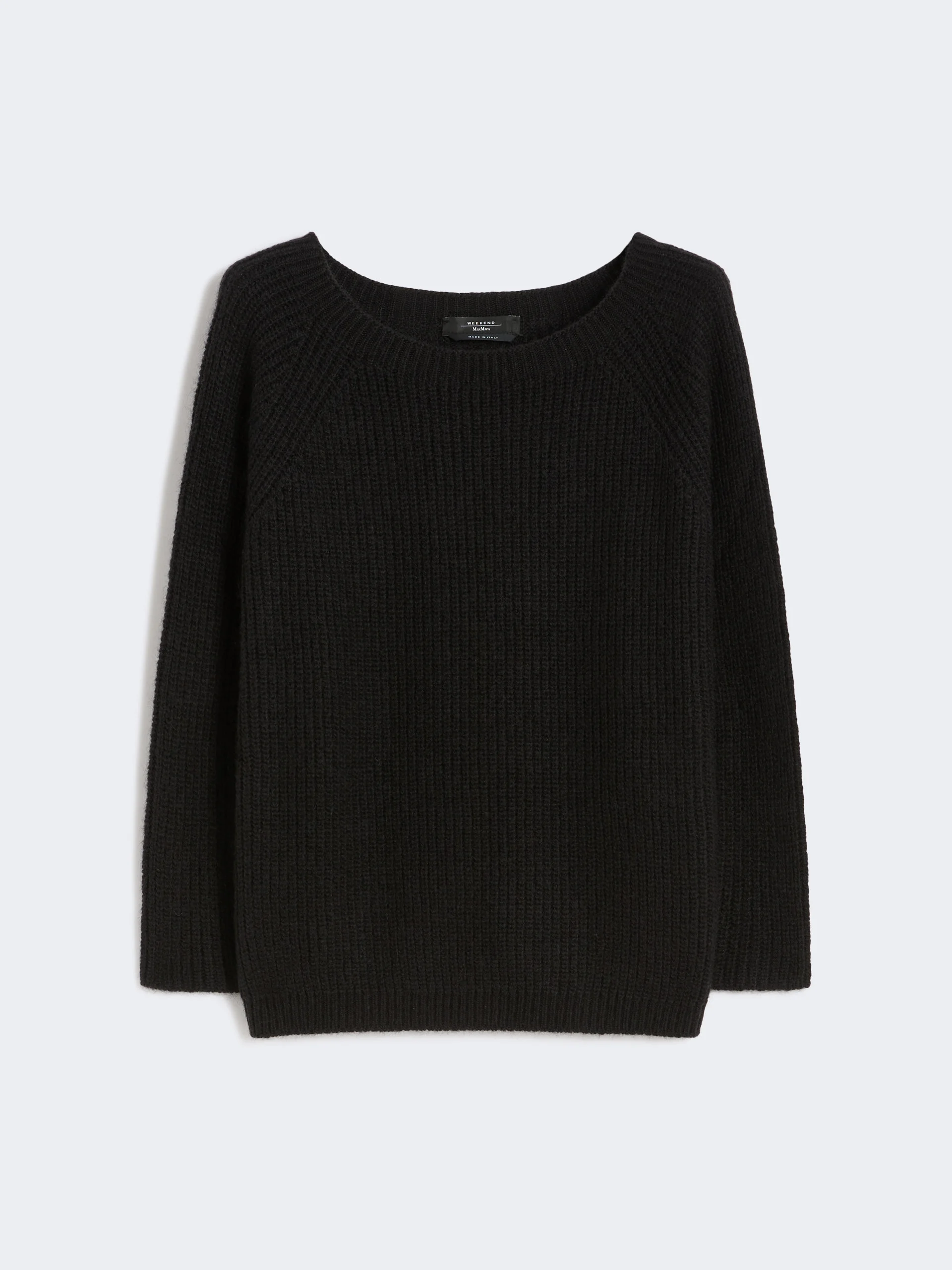 DETAILS Comfort-fit jumper with distinctive cob-stitch knit. Mohair knit jumper Regular fit and length Wide crew neck Long raglan sleeves COMPOSITION AND CARE 34% polyamide, 30% acrylic, 28% mohair, 8% polyester. Hand wash cold (40°c max); do not bleach; do not tumble dry; flat drying in the shade; cool iron; professionally dry clean perchloroethylene - mild process; do not wet clean.; iron with a cloth between.; using neutral detergent. Distributed by Max Mara S.r.l., registered office in Reggio Emilia (Italy), Via Giulia Maramotti 4, 42124 (IT)