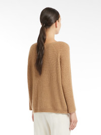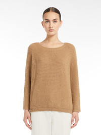 DETAILS Half fisherman’s-knit crew-neck sweater in fine mohair yarn. The regular-fit model boasts a relaxed cut, long raglan sleeves and rib-knit trims. COMPOSITION AND CARE 34% polyamide, 30% acrylic, 28% mohair, 8% polyester. Hand wash cold; do not bleach; do not tumble dry; flat drying in the shade; cool iron; professionally dry clean perchloroethylene - mild process; do not wet clean.; iron with a cloth between.; using neutral detergent. Distributed by Max Mara S.r.l., registered office in Reggio Emilia (Italy), Via Giulia Maramotti 4, 42124 (IT)
