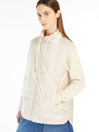 DETAILS Reversible gilet in soft water-repellent technical canvas featuring warm padding: Luxepad Ultra Fine Insulating Technology Camel-Silk Blend Edition. The outer side boasts a perfectly smooth texture, whilst the inner side is embellished with onion quilting detail. The flared model boasts a high drawstring neck, rounded hem, press stud-fastening side slits and welt pockets. Zip fastening. COMPOSITION AND CARE Fabric 100% polyester; with quilting in 49% polyester, 46% camelwool, 5% silk; inner fabric 100% polyamide. Do not wash; do not bleach; do not tumble dry; do not iron; professionally dry clean hydrocarbons low moisture - mild process; do not wet clean.; don’t iron the labels.; protect zipper tongue and slide before cleaning.; protect the ends stoppers and/or the cord ends before washing. Distributed by Max Mara S.r.l., registered office in Reggio Emilia (Italy), Via Giulia Maramotti 4, 42124 (IT)
