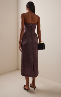 The eponymous designer marries their now-signature theatrical opulence with a futuristic romance seen across ultra-feminine silhouettes with captivating whimsy. Elevated with fanciful embellishments, playful sheen, and subversive details, classic cuts boast a newfound, spellbinding modernity that transcends trends — and proves impossibly cool. Mid-calf Ivy dress, fully hand-embroidered with glass cut beads. Features interior wasp corset with metal boned construction and lace-up corsetry. PRODUCT DETAILS - Pre-Fall '25 - Zip fastening - Composition: 80% polyester, 20% spandex - Designer color: Plum - Dry clean - Made in the USA SIZE & FIT - Our model is wearing a size 2 - Model is 5’10” with a 31.5” bust, 23.5” waist, and 35” hip - Fits true to size, our fit specialist recommends taking your normal size