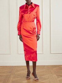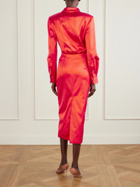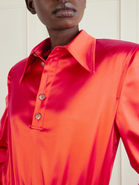 Willy Chavarria's dress is a striking example of the label's bold, polished aesthetic. Made from satin, it features a sharp collar, buttoned neckline and a softly cinched waist to define your figure. Wear it with heels and minimal jewelry to let the vibrant color luster take center stage.