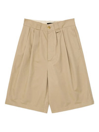 pleated logo-patch shorts Highlights - Beige - Belt loops - Button fastening - Rear patch pocket - Logo patch - Pleated front Imported Composition Fabric 100% Washing instructions Read Manufacturer Guidelines