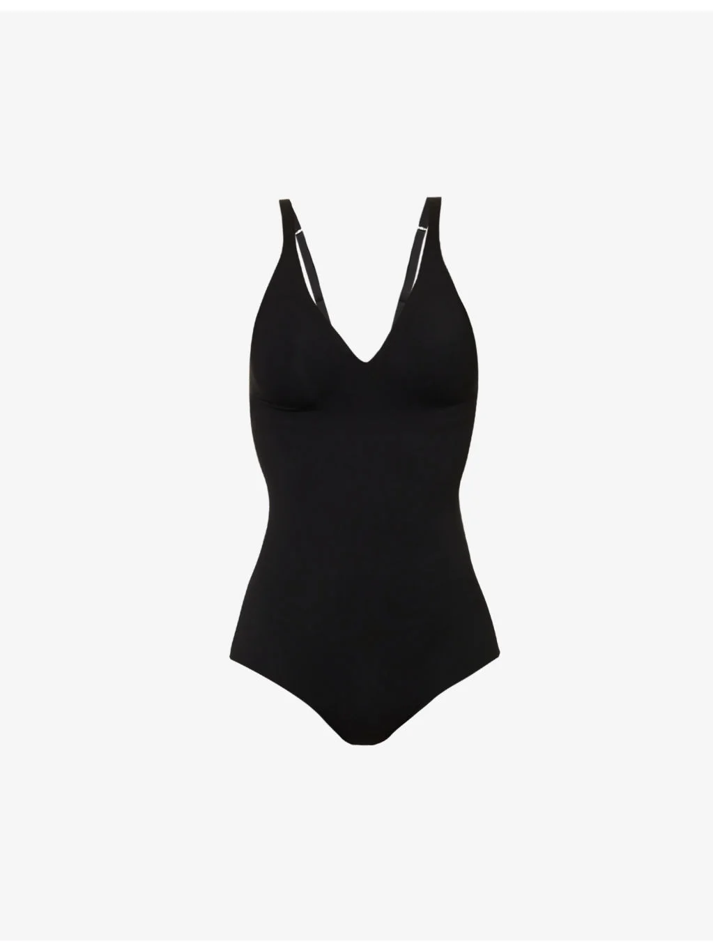 PRODUCT DETAILS - Wolford stretch-cotton body - 69% cotton, 31% elastane - Concealed popper fastening at gusset - Regular-fit, V-neck, shoulder straps, velvet trims, soft moulded cups, seamless, full-coverage at back - Machine wash cold - True to size - Model is 5ft 10in/1.78m and wears a size small - Lightweight, stretchy - For hygiene reasons, this product cannot be exchanged or refunded, unless faulty.