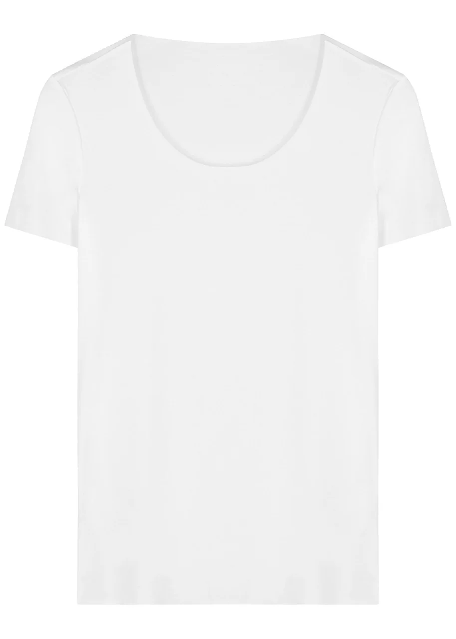 INFO & CARE - Wolford stretch-modal jersey T-shirt - Cradle to Cradle Certified™ meaning all components are biodegrade or depolymerize to help reduce waste - Scoop-neck, raw unfinished trims - Slips on - 89% modal 11% elastane - Machine wash SIZE & FIT - Length shoulder to hem: 25 inches/ 63cm - Midweight - Semi-fitted style - Model is 5'9"/ 175cm and wears a size small