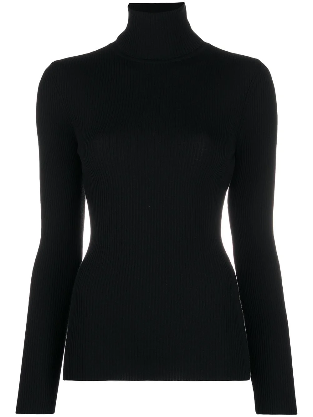 roll-neck ribbed jumper Highlights - Black - Virgin wool - Ribbed knit - Fitted silhouette - Roll neck - Long sleeves Imported Composition Virgin Wool 100% SIZE & FIT Model measurements Height 5 ft 9 in(1.76 m) Bust/Chest 31.88 in(81 cm) Hips 37 in(94 cm) Waist 25.19 in(64 cm) FittingInformation This piece fits true to size. We recommend you get your regular size Cut for a slim fit Made with a mid-weight fabric Washing instructions Machine Wash