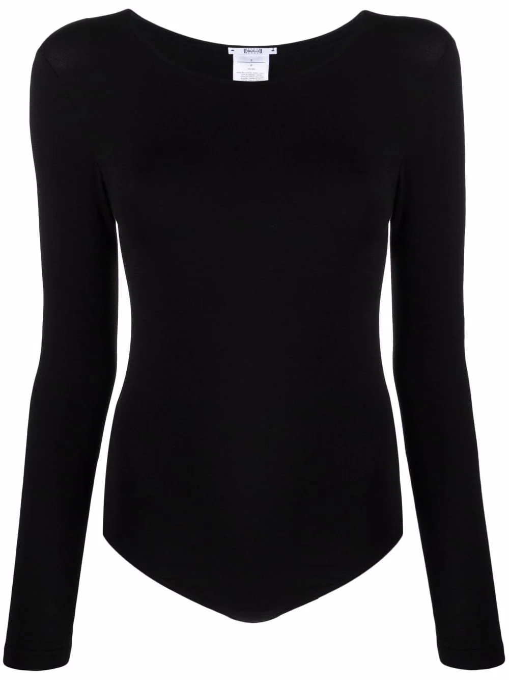 Berlin long-sleeve bodysuit Highlights - Black - Stretch-design - Seamless - Round neck - Wide neck - Long sleeves - Just a reminder that this piece must be tried on over your own garments. Imported Composition Cotton 48%, Polyamide 46%, Spandex/Elastane 6% SIZE & FIT Model measurements Height 5 ft 9 in(1.75 m) Bust/Chest 31.49 in(80 cm) Hips 34.64 in(88 cm) Waist 24.01 in(61 cm) FittingInformation This piece fits true to size. We recommend you get your regular size Cut for a close fit Made with a mid-weight fabric Washing instructions Machine Wash
