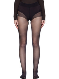 Sheer stretch nylon jersey tights. · Bonded seams throughout · 10 denier · Elasticized waistband · Reinforced toes · Partial jersey lining Supplier color: Black 73% polyamide, 27% elastane. Made in Austria 252017F076044