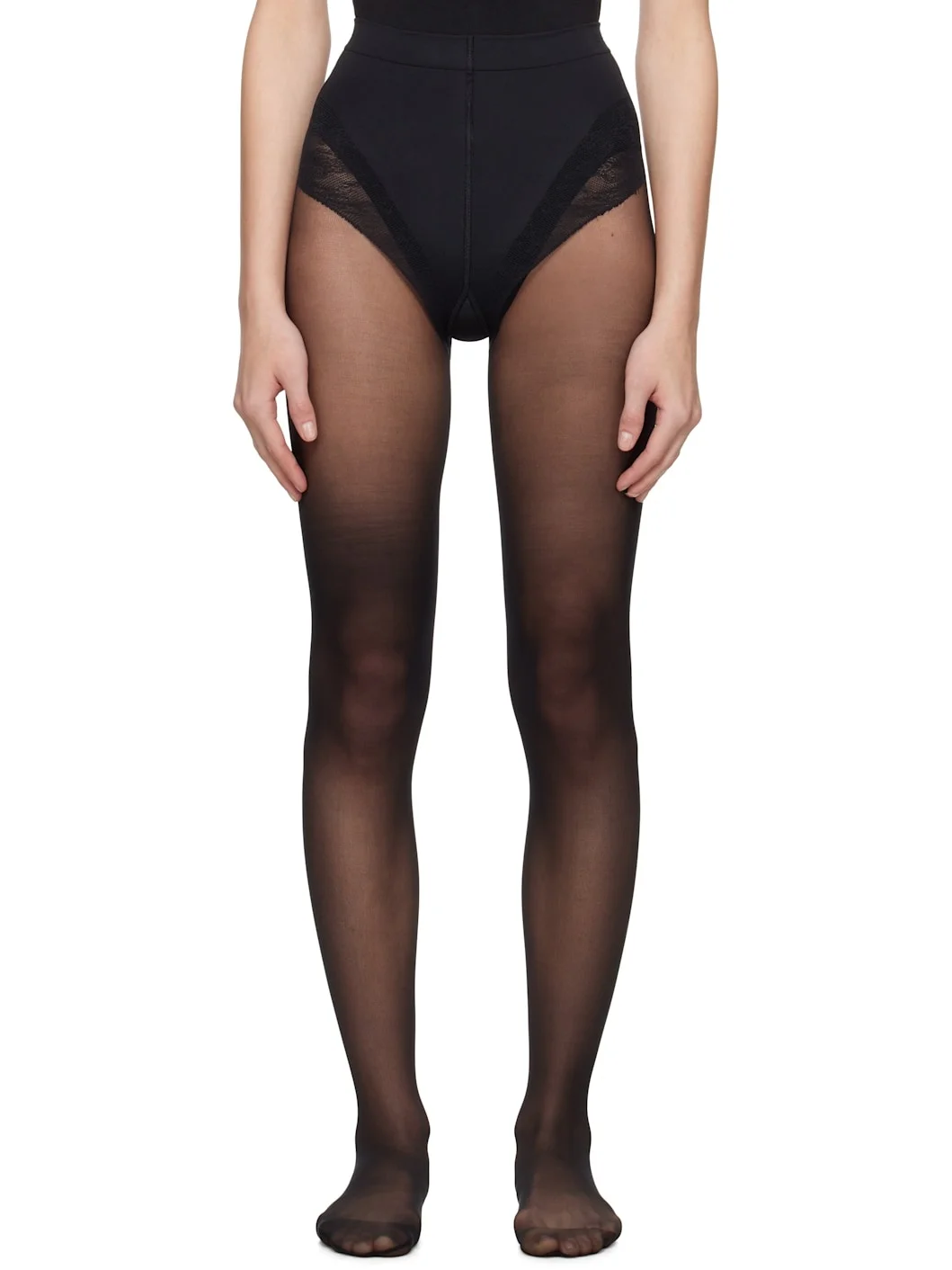 Sheer stretch nylon jersey tights in black. · 20 denier nylon · Logo-woven elasticized waistband · Lace trim and compression at waistband · Reinforced toes · Partial jersey lining Supplier color: Black 81% polyamide, 19% elastane. Made in Austria 252017F076004