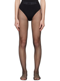 Semi-sheer stretch ECONYL® recycled nylon fishnet tights in black. · Logo-woven elasticized waistband · Partial jersey lining Supplier color: Black 82% polyamide, 18% elastane. Made in Italy 252017F076000