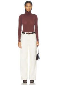 - 48% cotton 46% polyamide 6% elastane - Machine wash - Snap gusset closure - Turtleneck design - Thong back - Lightweight jersey fabric - Garment is made with a semi-sheer fabric, undergarments can show through - Revolve Style No. WFOR-WS107 - Manufacturer Style No. 75084