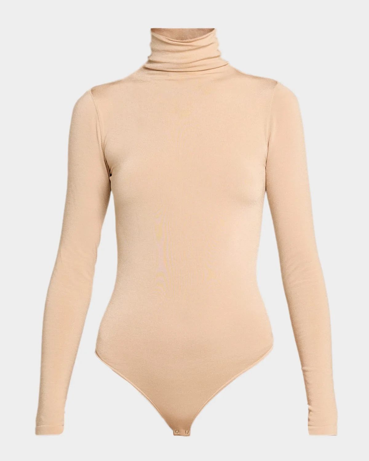 Wolford "Colorado" circular-knit string bodysuit in an opaque, shiny-finished cotton blend Turtleneck Long sleeves Minimal seat coverage Formfitting Snap gusset closure Cotton/elastane Made in the Czech Republic