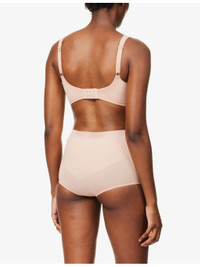 PRODUCT DETAILS - Wolford stretch-woven bra - 66% cotton, 34% elastane - Hook-and-eye fastening at back - Scoop neck, adjustable shoulder straps, contrasting panels, fully lined - Machine wash cold - True to size - Model is 5ft 9in / 1.75m and wears a size 34D - Lightweight, stretchy