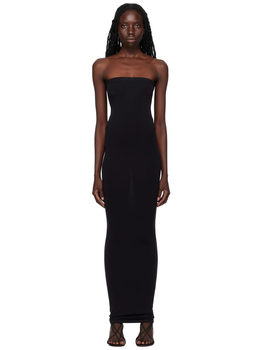 BLUFIBRE® stretch nylon jersey dress. · Rib knit straight neck · Cutout at side seams for alternate styling · Unlined Supplier color: Black 93% polyamide, 7% elastane. Made in Slovenia 232017F055003