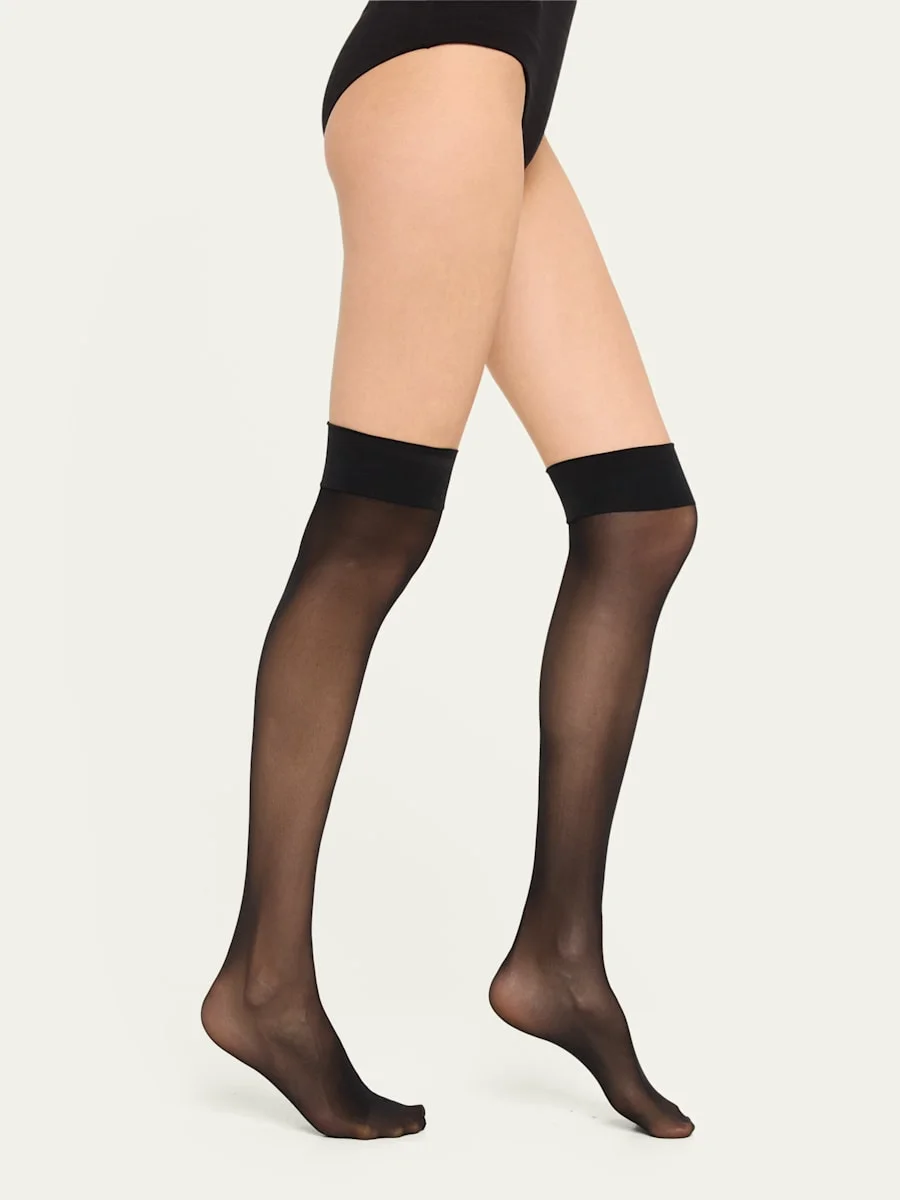 Wolford "Individual 10" sheer stockings Digfree bands with doublewrapped elastane Reinforced toe 10 denier Nylon/polyamide/elastane Made in Austria