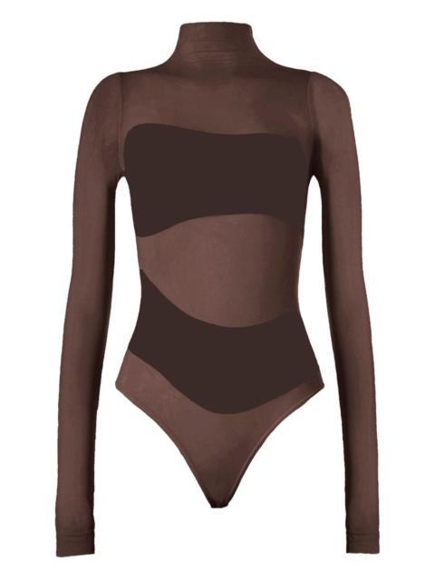 long-sleeve body Highlights - Buttercream - Sheer panels - High neck - Long sleeves - Thong brief - Just a reminder that this piece must be tried on over your own garments. Imported Composition Polyamide 94%, Elastane 6% Washing instructions Machine Wash