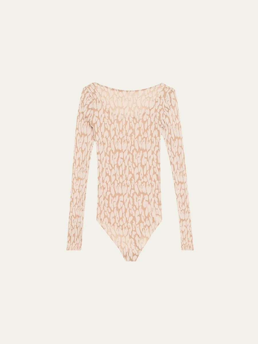 Wolford seamless soft knit bodysuit featuring an allover leopard motif Boat neckline Long sleeves Slim fit Snapgusset closure Nylon/polyamide/polyester/elastane Unlined Machine wash cold gentle Imported