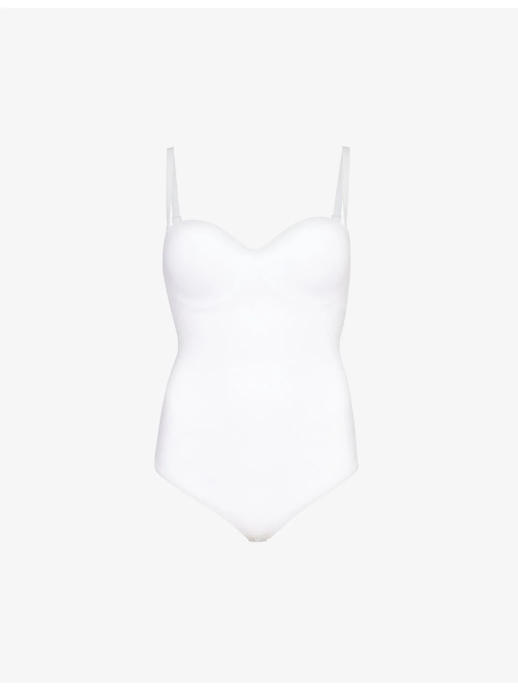 PRODUCT DETAILS - Wolford stretch-woven body - 80% polyamide, 20% elastane - Popper fastenings at gusset - Sculpted fit, sweetheart neck, adjustable branded shoulder straps, moulded cups, detachable padded insert at cups, underwired, V-string at back, lined gusset - Hand wash - True to size - Model is 5ft 10in/1.78m and wears a size small - Lightweight, stretchy - For hygiene reasons, this product cannot be exchanged or refunded, unless faulty