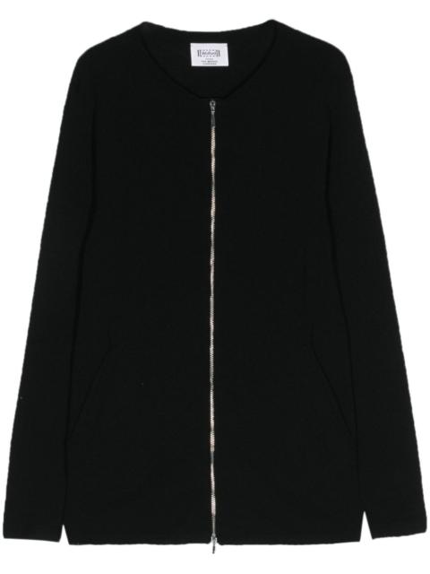 merino-wool cardigan Highlights - Black - Merino wool - Knitted construction - Crew neck - Long sleeves - Two side pouch pockets - Ribbed hem - Silver-tone hardware - Front two-way zip fastening Made in Italy Composition Merino 100%
