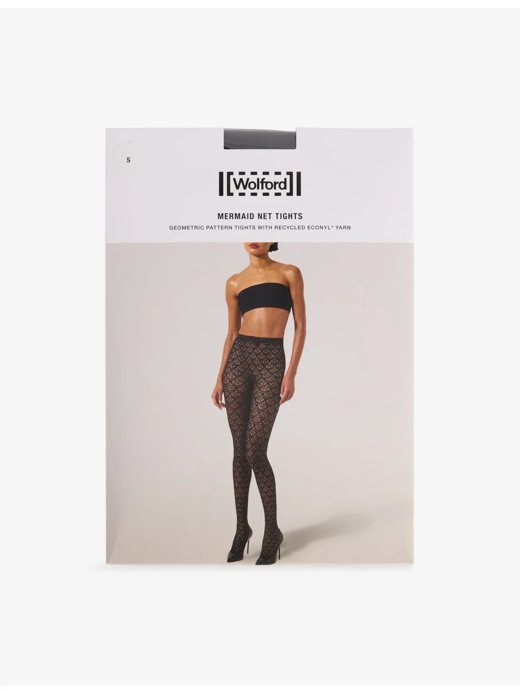 PRODUCT DETAILS - Wolford stretch-woven tights - 83% polyamide, 17% elastane - High rise, geometric pattern, toe reinforcement, netted texture - Machine wash cold - Lightweight, stretchy Ref: R04545695