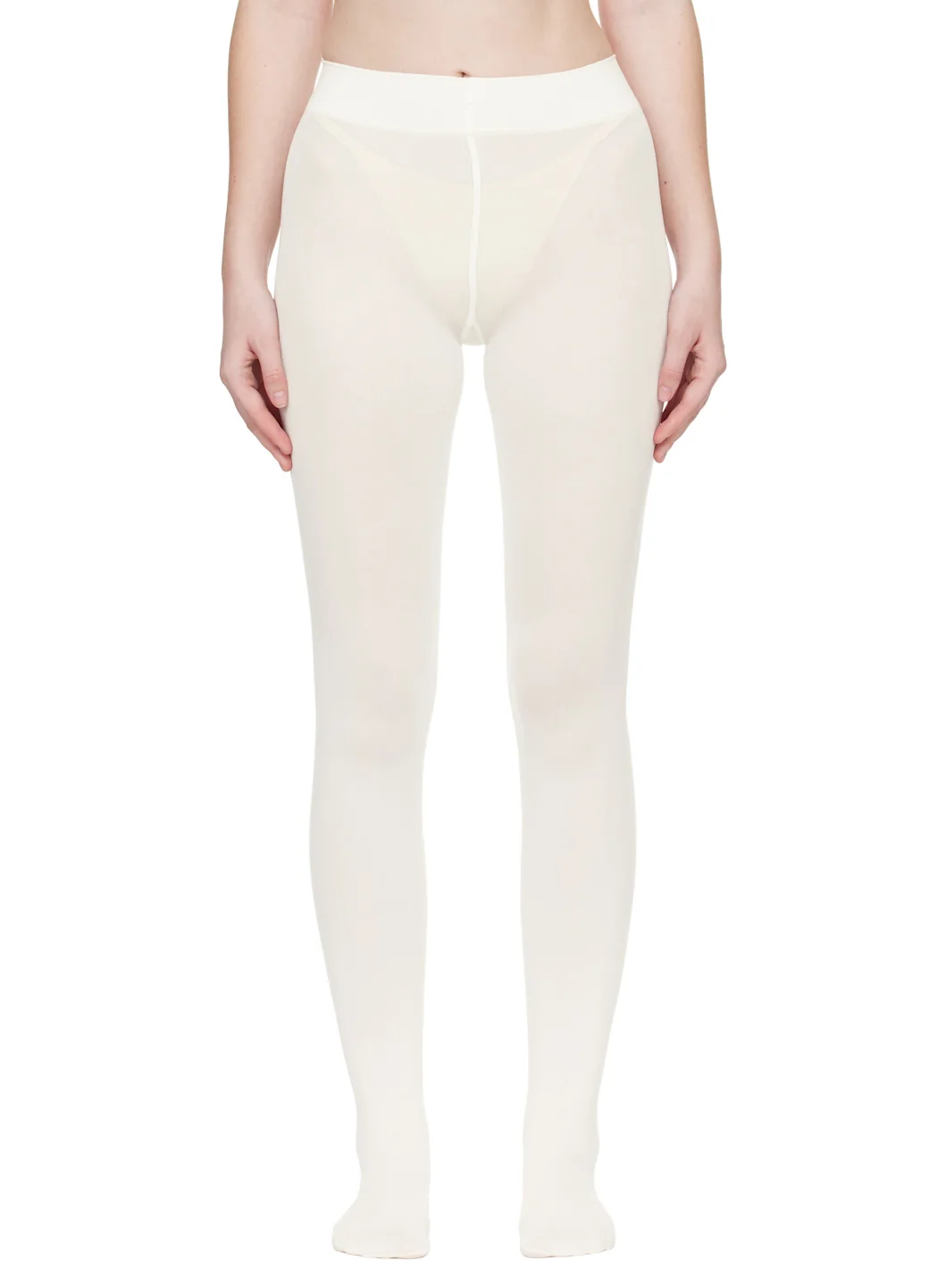 Semi-sheer stretch nylon jersey tights. · 66 denier · Jacquard logo at elasticized waistband · Partial jersey lining Supplier color: Ecrue 94% nylon, 6% elastane. Made in Austria 252017F076038