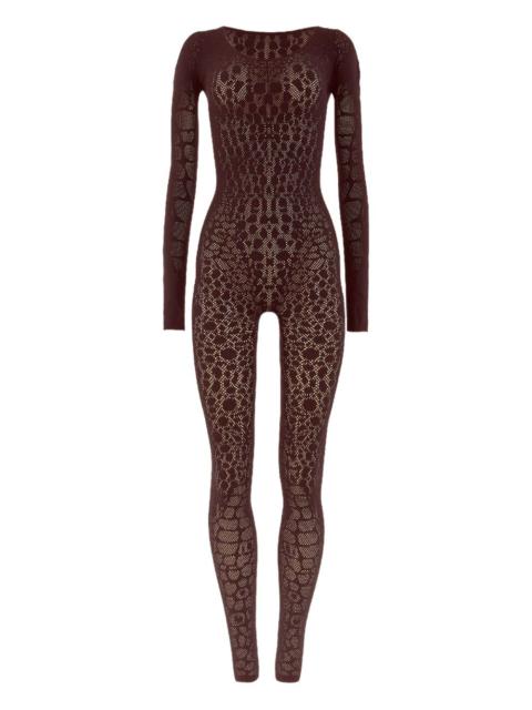 python-pattern long-sleeve jumpsuit Highlights - Dark brown - Python pattern - Long sleeves - Round neck - All-in-one design Made in Italy Composition Recycled ECONYL® 100% Washing instructions Read Manufacturer Guidelines