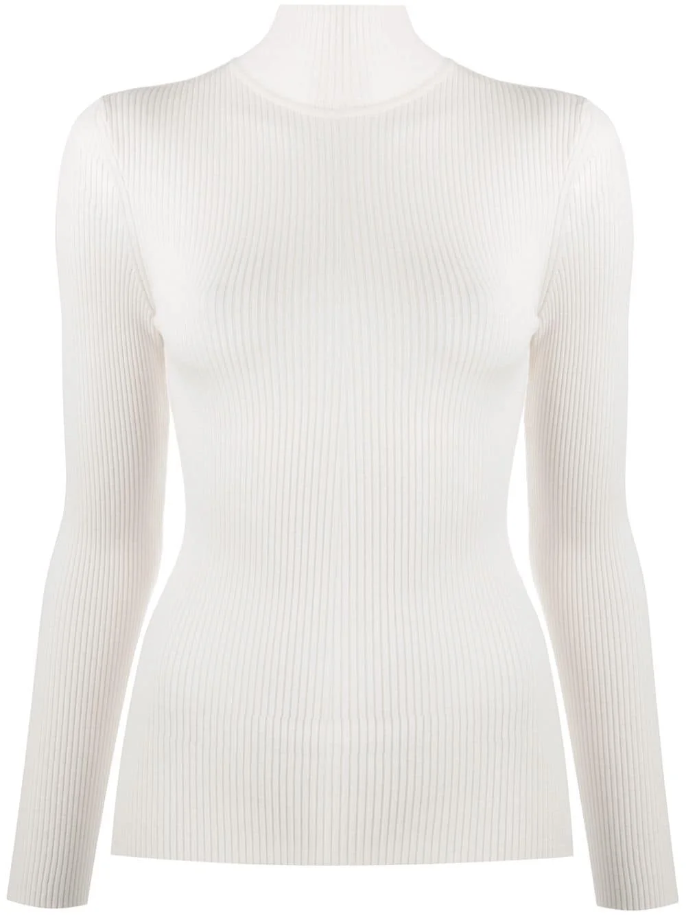 roll-neck fitted jumper Highlights - White - Virgin wool - Fine knit - Roll neck - Long sleeves Imported Composition Virgin Wool 100% SIZE & FIT Model measurements Height 5 ft 10 in(1.77 m) Bust/Chest 33.46 in(85 cm) Hips 35.43 in(90 cm) Waist 26.77 in(68 cm) FittingInformation This piece fits true to size. We recommend you get your regular size Cut for a slim fit Made with a mid-weight fabric