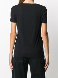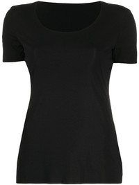 round-neck T-shirt Highlights - Black - Round neck - Short sleeves Imported Composition Modal 89%, Spandex/Elastane 11% SIZE & FIT Model measurements Height 5 ft 9 in(1.76 m) Bust/Chest 31.88 in(81 cm) Hips 37 in(94 cm) Waist 25.19 in(64 cm) Measurement SLEEVE LENGTH 5.9 in(15 cm) Shoulder Width 13.38 in(34 cm) LENGTH 22.44 in(57 cm) BUST 31.88 in(81 cm) FittingInformation This piece fits true to size. We recommend you get your regular size Cut for a relaxed fit Made with a mid-weight stretch fabric