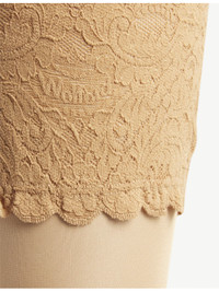 PRODUCT DETAILS - Wolford nylon tights - 87% polyamide, 13% elastane - Pulls on - Invisible design, wide lace band, toe reinforcement - Machine wash cold - Lightweight, stretchy