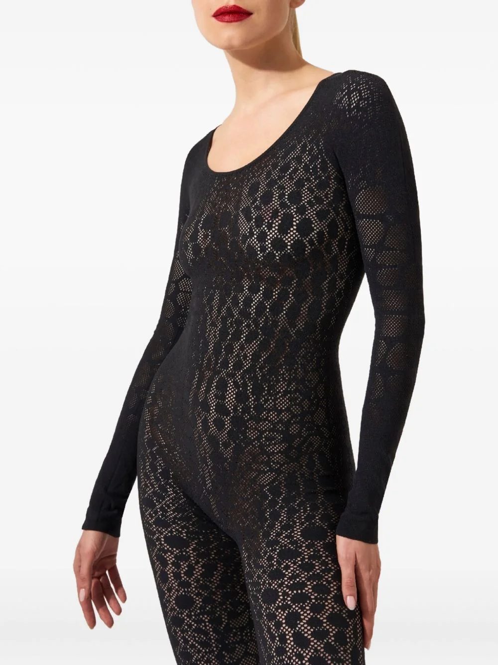 python-pattern long-sleeve jumpsuit Highlights - Black - Python pattern - Long sleeves - Round neck - All-in-one design Made in Italy Composition Recycled ECONYL® 100% Washing instructions Read Manufacturer Guidelines