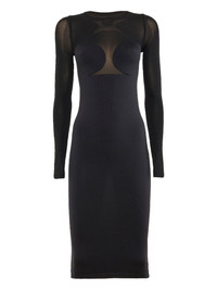 sheer-panelled long-sleeve dress Highlights - Black - Sheer yoke panel - Long sleeves - Round neck - Fitted bodice - Midi length Imported Composition Fabric 100% Washing instructions Read Manufacturer Guidelines