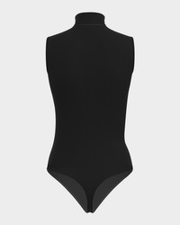 Wolford bodysuit in circularknit fabric Dyeing meets the bluesign® standard for chemical, water, and energy usage Edges reinforced with hidden elastic tape Mock neckline Sleeveless Highcut legs Minimal seat coverage Formfitting Cottonlined snap gusset Modal/elastane Machine wash cold Imported