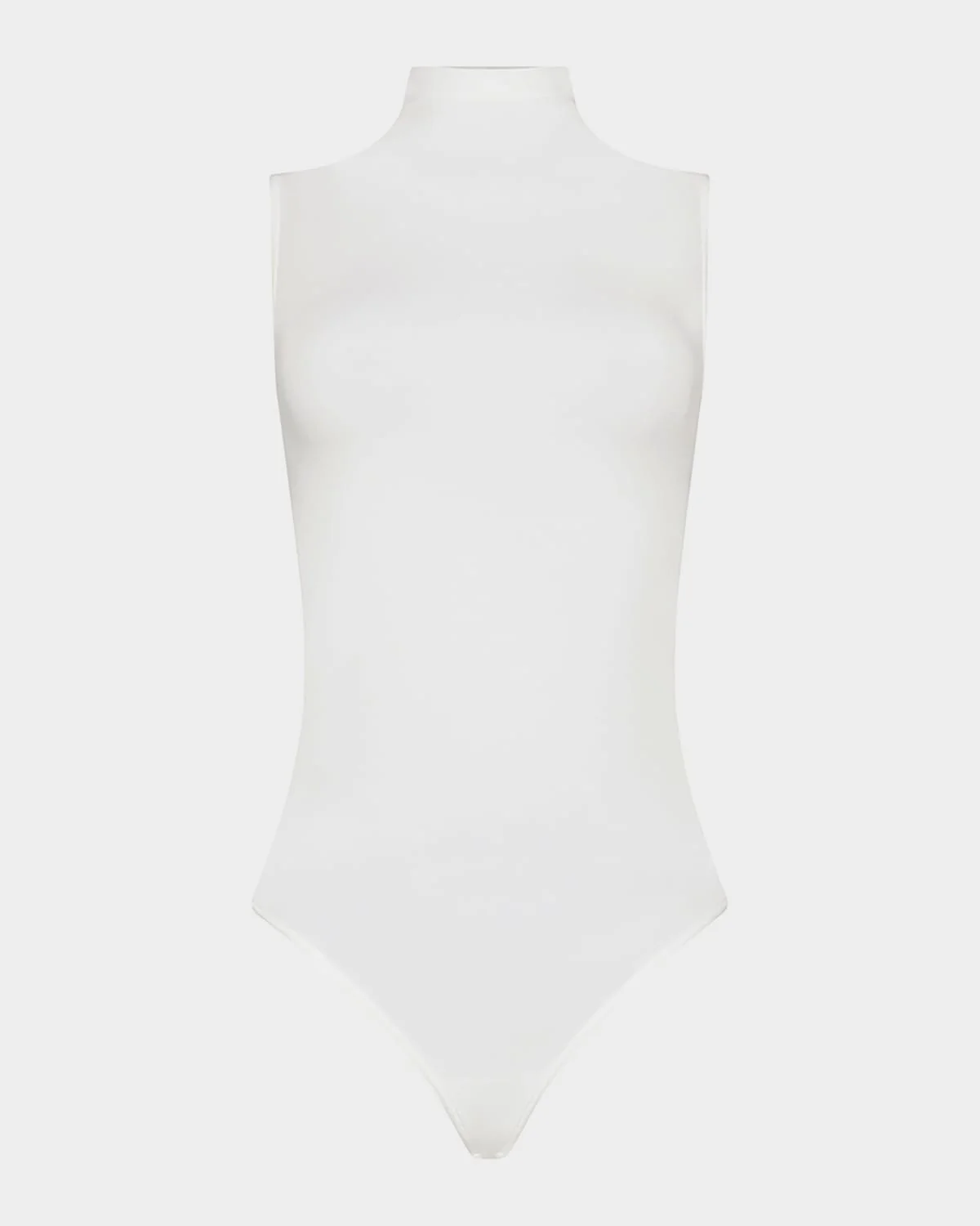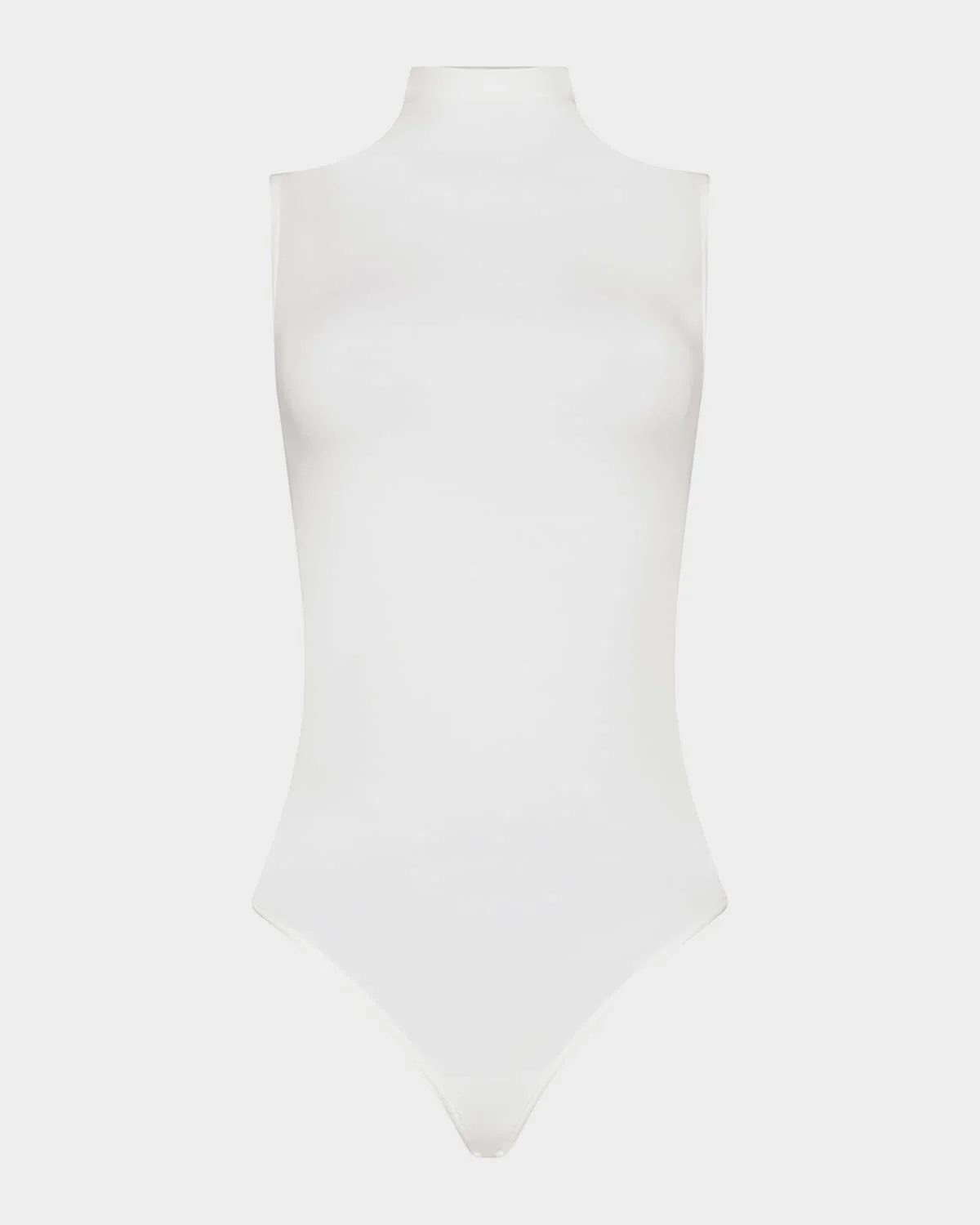 Wolford bodysuit in circularknit fabric Dyeing meets the bluesign® standard for chemical, water, and energy usage Edges reinforced with hidden elastic tape Mock neckline Sleeveless Highcut legs Minimal seat coverage Formfitting Cottonlined snap gusset Modal/elastane Machine wash cold Imported
