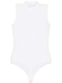 High-neck bodysuit [ SKU: 10198645346 ] white modal blend lightweight jersey concealed press-stud fastening high neck sleeveless high cut Just a reminder that this piece must be tried on over your own garments. Composition Modal 74% Polyamide 21% Elastane 5% Reference 760711300 Made in Slovenia Size and Fit This piece fits true to size. We recommend you get your regular size Model is 1,75m / 5ft 8in wearing size S