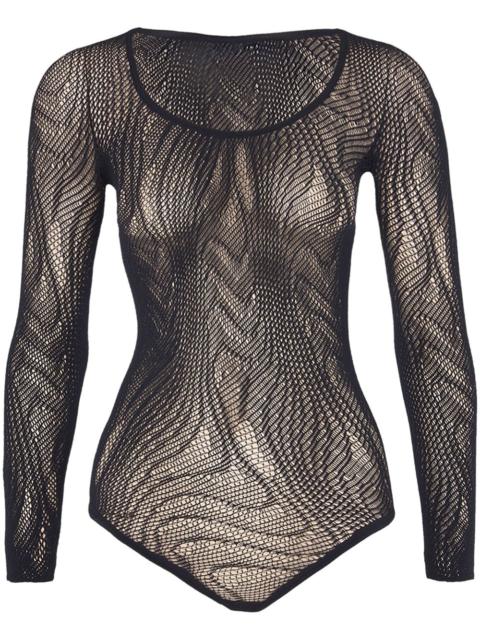 Snake Net String bodysuit Highlights - Black - Perforated embellishment - Long sleeves - Just a reminder that this piece must be tried on over your own garments. Made in Italy Composition ECONYL® 100%