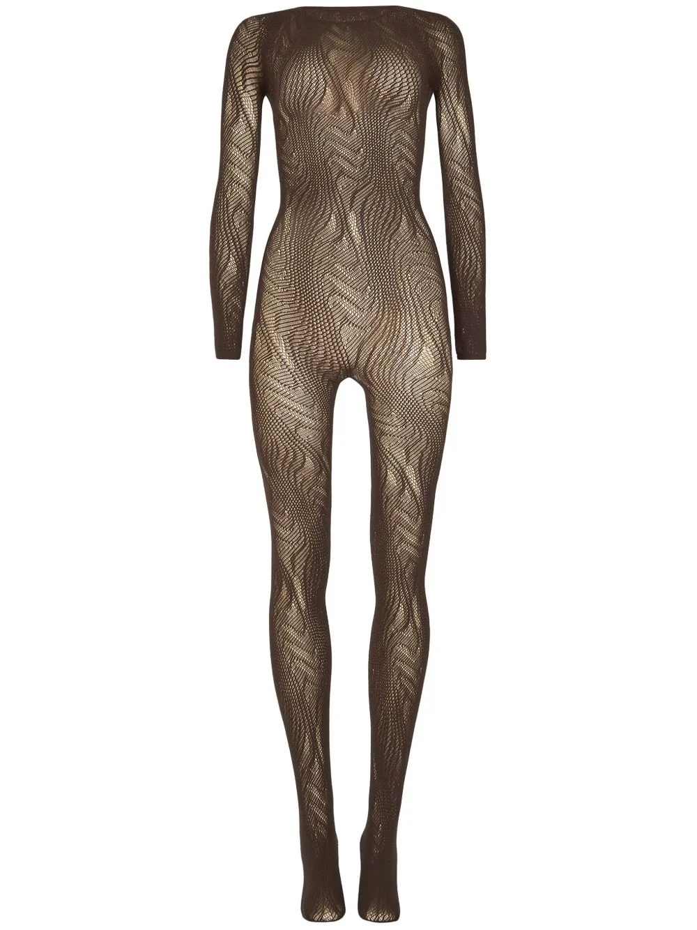 snake-pattern net catsuit Highlights - Coffee brown - Mesh design - Round neck - Long sleeves - Just a reminder that this piece must be tried on over your own garments. Made in Italy Composition Fabric 100% Washing instructions Read Manufacturer Guidelines