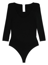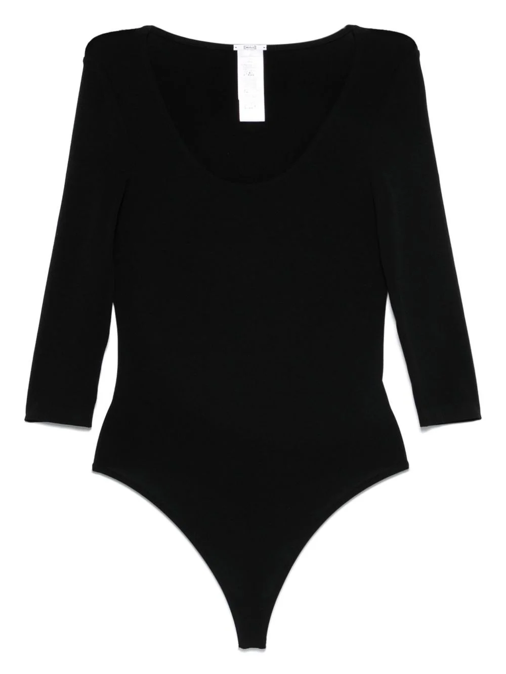 Tokio bodysuit [ SKU: 10197496287 ] The Tokio bodysuit from Wolford represents the pinnacle of luxury in the bodysuit category. This exquisite piece features a scoop neck and three-quarter length sleeves, making it perfect for layering or wearing solo. Style it with tailored trousers for a sophisticated office look or pair it with a sleek skirt for an elegant evening out. The thong strap design ensures seamless styling under any outfit, while the press stud fastening adds a unique touch. Ideal for special occasions, this bodysuit enhances your wardrobe with its refined design and versatility, making it a must-have for the modern woman. Composition Modal 74%, Nylon 21%, Polyester 5% Reference 760707005