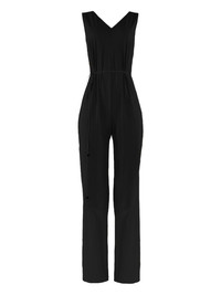 V-neck self-tie jumpsuit Highlights - Black - V-neck - Self-tie waist - Sleeveless - Side pockets Imported Composition Fabric 100% Washing instructions Read Manufacturer Guidelines