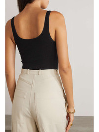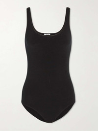 EDITORS'NOTES With its flattering scoop neckline and smooth silhouette, Wolford's lustrous stretch-jersey bodysuit is a flattering alternative to a tank top. Crafted using a seamless knitting technique, it has full coverage briefs and is finished with translucent trims for a flawless finish even under close-fitting styles. SIZE & FIT Model measurements: - Fits true to size, take your normal size - Those with a curvy figure may wish to take the next size up - Cut for a very close fit - Medium brief coverage - Lightweight, stretchy fabric - Model is 177cm/ 5'10" and is wearing a size XSmall - Bust: 80cm/ 31.5" - Waist: 65cm/ 25" - Hip: 89cm/ 34.5" DETAILS & CARE - Black stretch-jersey - Snap fastenings at base - 48% cotton, 46% nylon, 6% elastane - Dry clean