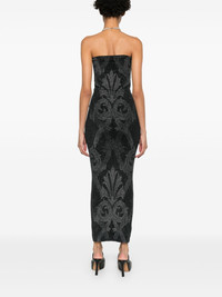 metallic jacquard maxi dress Highlights - Black/silver-tone - Stretch-design - Metallic finish - Patterned jacquard - Tube design - Pull-on style - Square neck - Strapless - Fitted waistline - Unlined - Straight hem - Long length Imported Composition Polyamide 92%, Elastane 5%, Polyester film fiber 3% SIZE & FIT Model measurements Height 5 ft 10 in(1.77 m) Bust/Chest 28.74 in(73 cm) Hips 35.03 in(89 cm) Waist 23.62 in(60 cm) FittingInformation Designed for a close fit throughout Made from a midweight stretch fabric, this piece offers elasticity and flexibility when worn Washing instructions Machine Wash