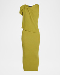 Crafted in a soft ribbed knit, this Wynn Hamlyn midi dress features a shrugeffect bodice with draping. Crew neckline Asymmetric sleeves; approx. 7.6"L Slim silhouette Hem falls below the knee Slipover style Nylon/polyamide/modal/wool Dry clean Imported