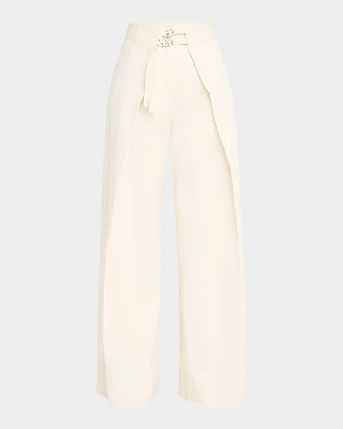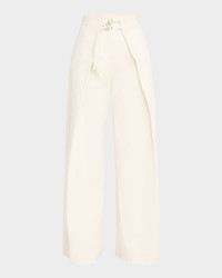 - Wynn Hamlyn utility trousers featuring a belted wrap front - Approx. 11.4" rise; 11.2" inseam; 22.6" outseam - High rise - Back welt pockets - Wide legs - Full length - Hook/zip fly - Cotton - Dry clean - Imported