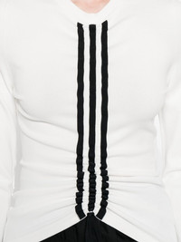 stripe-detail long-sleeve T-shirt Highlights - White - Long sleeves - Crew neck - Three black stripes Imported Composition Viscose 83%, Polyester 17% SIZE & FIT Model measurements Height 5 ft 9 in(1.75 m) Bust/Chest 34.64 in(88 cm) Hips 36.61 in(93 cm) Waist 26.37 in(67 cm) Washing instructions Read Manufacturer Guidelines