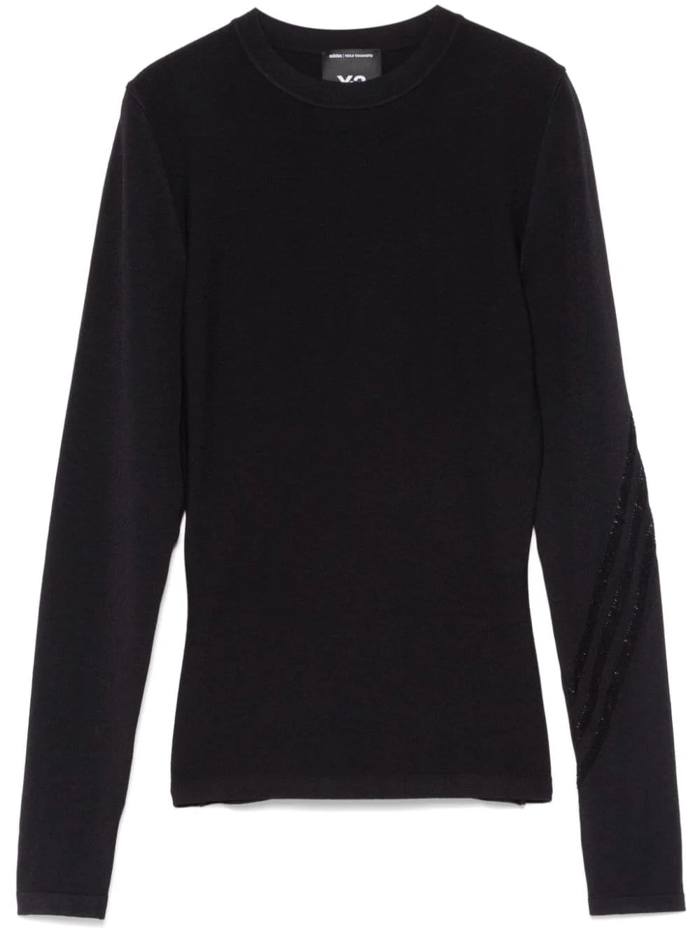 3-Stripes top Highlights - Black - Stretch-design - Knitted construction - Rear signature 3-stripes logo - Crew neck - Long sleeves - Fitted waistline - Straight hem Imported Composition Viscose 83%, Recycled Polyester 17% SIZE & FIT Model measurements Height 5 ft 11 in(1.8 m) Bust/Chest 31.49 in(80 cm) Hips 36.61 in(93 cm) Waist 24.4 in(62 cm) FittingInformation Designed for a slim fit that sits just away from the body offering a close yet comfortable fit Made from a midweight non-stretch fabric, this piece offers minimal elasticity when worn